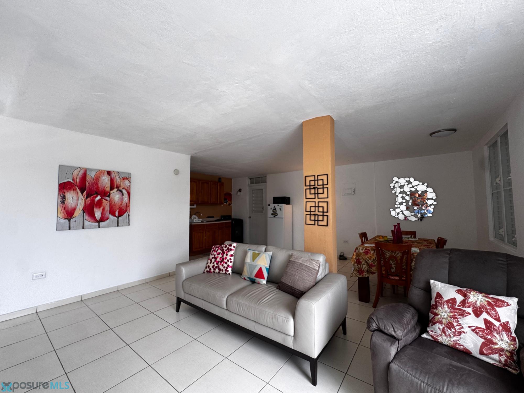 Furnished apartment on 1st level for lease. Apt has 3 bedrooms, 1bathroom, open concept living-dining-kitchen, parking space with laundry area. Apt includes 4 air conditioners, furniture and appliances for the living room, kitchen and dining room plus two sets of bedrooms. Water, electricity and internet service are included. Quick access to main road #2 and PR Highway 22. Located on the periphery of shops, schools, beaches, hospitals, medical facilities and universities. Located in Hoyo Los Santos community, H-37 5 th street in Arecibo PR. Income and employment verification, credit report, and lease deposit bond will be requested..