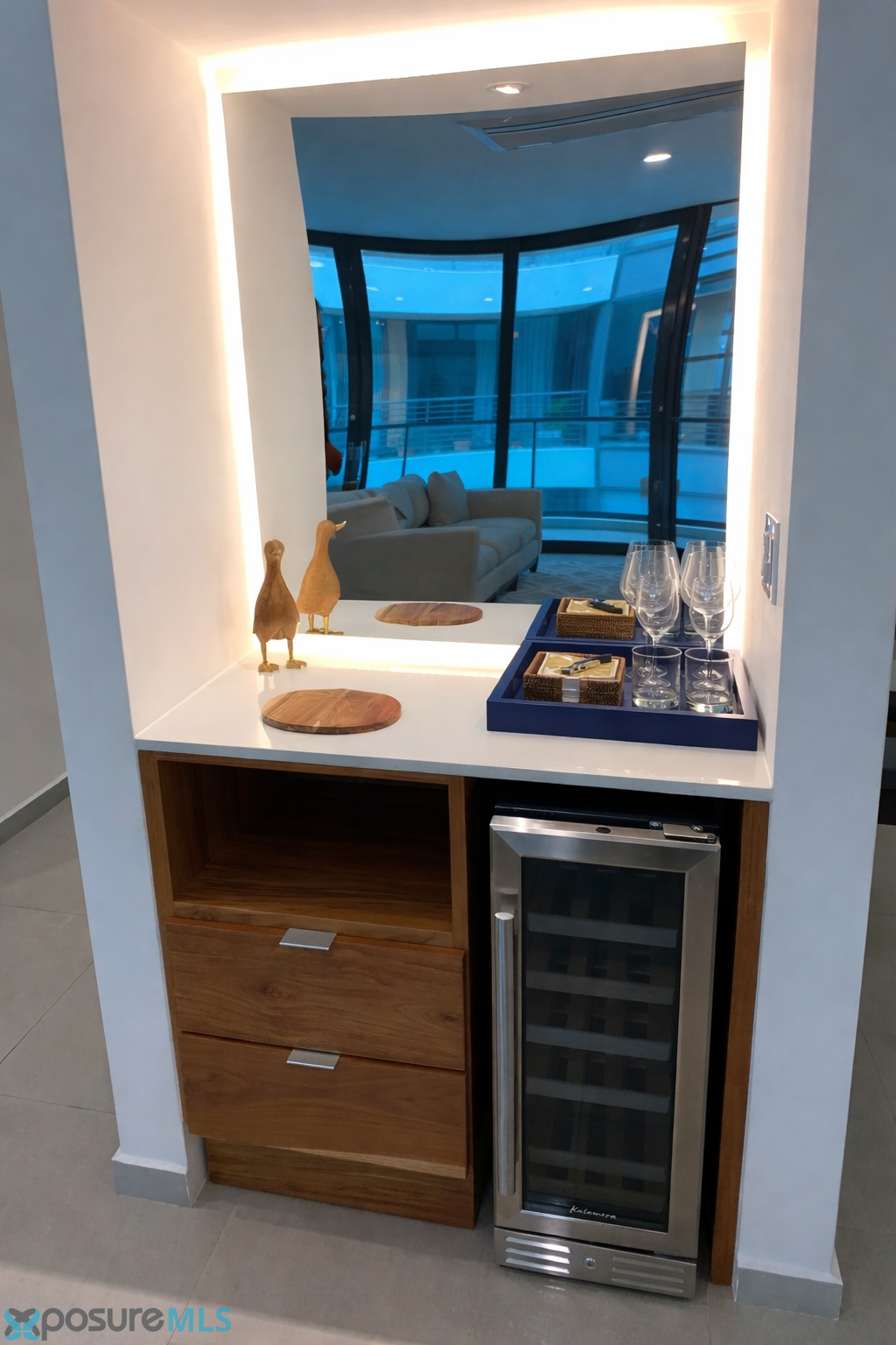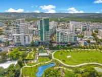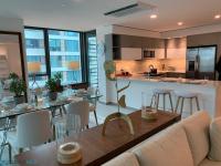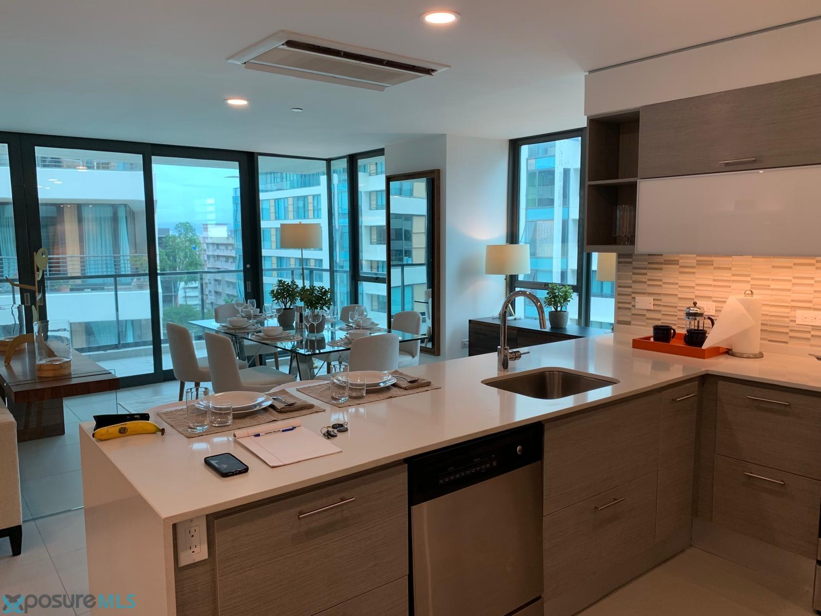Experience the epitome of metropolitan luxury in this stunning 1,595 sq. ft. residence located in the prestigious Torre del Norte 1000 within the Ciudadela community. This meticulously designed, open-concept apartment offers a seamless blend of style and sophistication, featuring a grand living space where the kitchen, dining, and lounge areas integrate flawlessly. The epicurean kitchen is a true centerpiece, boasting sleek modern cabinetry, premium stainless steel appliances—including a French-door refrigerator and integrated microwave—and an expansive white quartz peninsula with breakfast bar seating. Designed for the quintessential host, the interior features a striking custom-built bar with an integrated wine cooler and backlit mirror, creating a sophisticated transition to the outdoors. The crown jewel of this residence is the expansive wrap-around balcony, a rare architectural feature that extends your living space and provides panoramic views and a breezy, open-air sanctuary for entertaining guests against the vibrant backdrop of the Santurce skyline. The private quarters are equally impressive, led by an expansive master suite that serves as a true sanctuary with its spa-inspired en-suite bathroom and generous walk-in closet. The second bedroom is remarkably ample and uniquely versatile, featuring a custom built-in desk area and minimalist cabinetry that caters perfectly to the modern professional requiring an elegant home office. Throughout the residence, a neutral designer palette is accented by gallery-style lighting and modern finishes that emphasize the home’s contemporary aesthetic. Beyond the walls of this exquisite apartment, living in Ciudadela offers an unparalleled "city within a city" lifestyle. Residents enjoy the ultimate peace of mind with 24/7 security, 100% full-power backup generators, and a massive water cistern system, ensuring uninterrupted comfort. The convenience of Ciudadela is unmatched in San Juan, providing immediate on-site access to a 24-hour Pueblo Supermarket, a signature Planet Fitness, a pharmacy, and an array of fine dining and artisanal cafes. Located in the heart of the Santurce Arts District, you are just steps away from the Puerto Rico Museum of Art and the city's most celebrated cultural venues. This property represents a rare opportunity to secure a turnkey, high-floor residence that combines luxury, security, and the most walkable, vibrant lifestyle on the island..